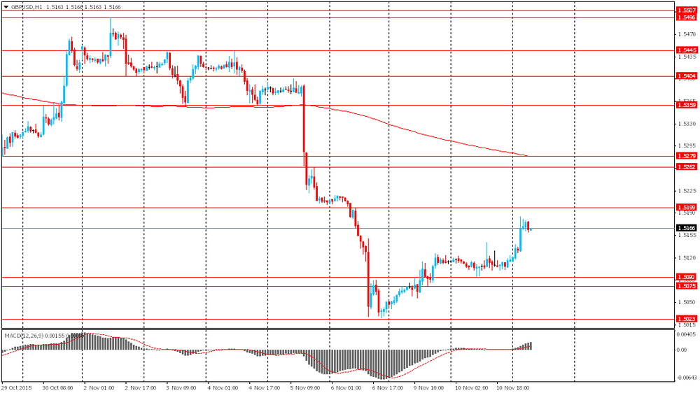 Доллар снижался против евро и фунта после выхода негативной статистики из Китая. Национальное статистическое бюро КНР опубликовало данные по промышленному производству в стране за октябрь. Показатель вырос всего на 5.6%, тогда как экономисты ожидали роста промпроизводства на 5.8%. Стоит отметить, значение также оказалось ниже предыдущего месяца (5.7%). Данная слабая статистика усиливает опасения инвесторов по поводу перспектив экономики Китая. Ожидается, что данная негативная статистика может оказать влияние на решение ФРС относительно сроков повышения ставок в стране.