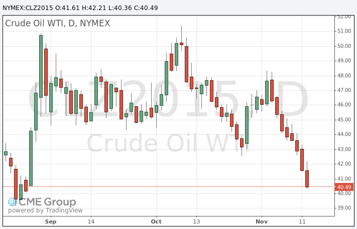 Стоимость декабрьских фьючерсов на американскую легкую нефть марки WTI (Light Sweet Crude Oil) упала до 40,36 доллара за баррель на Нью-Йоркской товарной бирже.
