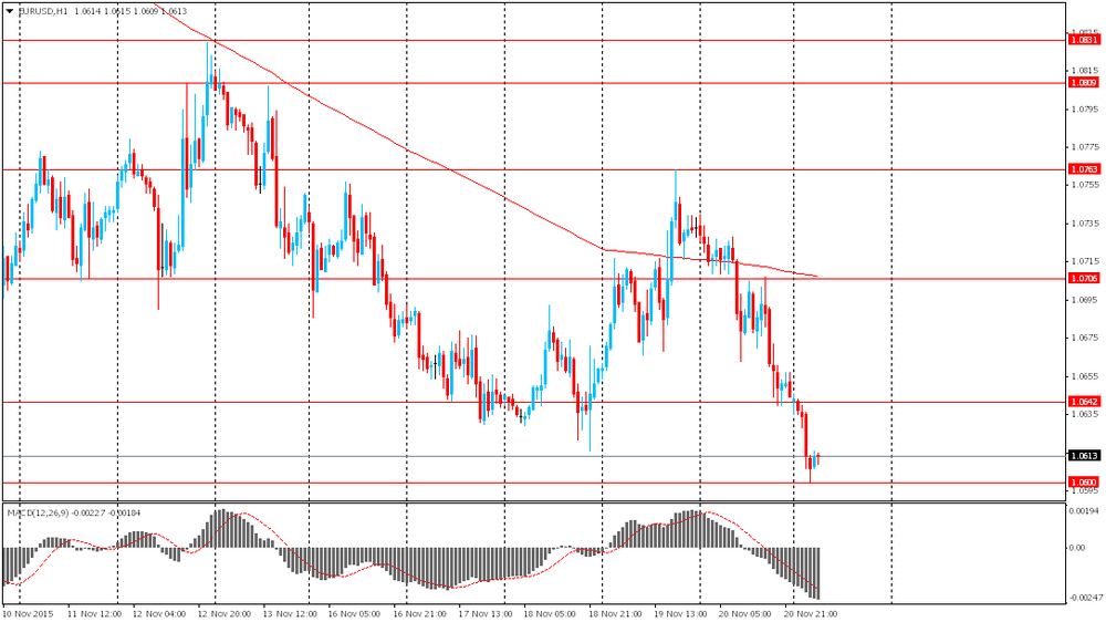Евро снижался против доллара, продолжая торговаться в районе 7-ми месячного минимума на фоне ожиданий расширения программы количественного смягчения от ЕЦБ после пятничного выступления управляющего ЦБ Марио Драги. Выступая во Франкфурте на банковском конгрессе, Драги заявил, что на декабрьском заседании регулятор оценит степень устойчивости тех факторов, которые замедляют процесс возвращения инфляции к отметке 2%. Помимо этого, управляющий ЦБ отметил, что если достижение целевого уровня инфляции будет находиться под угрозой, то ЕЦБ задействует все инструменты, имеющиеся в его распоряжении. Также на этой неделе будут опубликованы результаты опросов потребителей и компаний. Вероятно, данные покажут, что доверие к экономике еврозоны в ноябре осталось на прежнем уровне, несмотря на террористическую угрозу, корпоративный скандал и замедление экономик стран с развивающимися рынками, говорят аналитики. Согласно прогнозу экономистов, опрошенных The Wall Street Journal, индикаторы должны показать, что доверие к экономике еврозоны с октября по большей части не изменилось. Кроме того, предварительные результаты опросов менеджеров по снабжению, опубликованные Markit, по всей видимости, укажут на сохранение прежних объемов производства во Франции, Германии и еврозоне в целом.