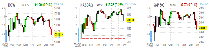 Основные фондовые индексы Уолл-стрит слегка изменились в среду, последний полный день торгов этой недели. В четверг фондовый рынок США будет закрыт по случаю празднования Дня благодарения, а в пятницу инвесторов ждет укороченный рабочий день.