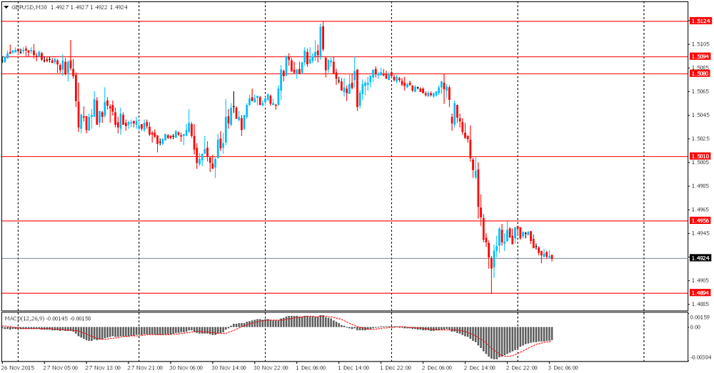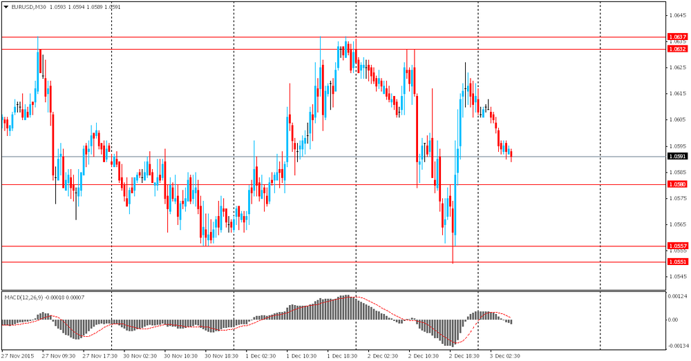 В 09:30 GMT Великобритания представит индекс PMI в секторе услуг за ноябрь. В 10:00 GMT еврозона выпустит розничные продажи за октябрь. В 12:45 GMT станет известно решение по процентным ставкам ЕЦБ. В 13:30 GMT пройдет пресс-конференция главы ЕЦБ. В США в 13:30 GMT выйдут первичные обращения за пособием по безработице, в 15:00 GMT - индекс деловой активности в сфере услуг от Института управления поставками (ISM) за ноябрь, производственные заказы за октябрь. В 15:00 GMT выйдет полугодовой отчет по денежно-кредитной политике председателя совета управляющих ФРС Джанет Йеллен.
