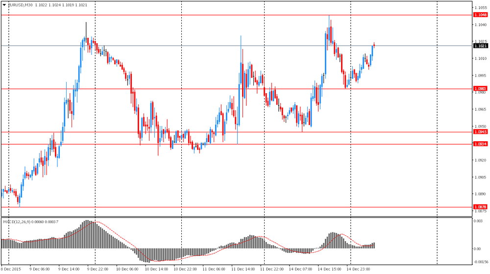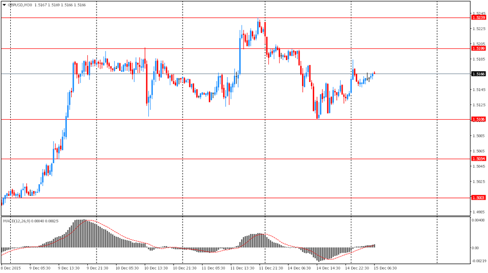 Фунт немного вырос в ожидании сегодняшней публикации инфляционных данных. Экономисты прогнозируют, что после снижения в течение двух месяцев в ноябре по сравнению с таким же периодом прошлого года цены выросли, повышая вероятность роста процентной ставки Банка Англии в 2016 году. Ожидается, что базовая годовая инфляция составила 1,09%, а общая годовая инфляция - 0,4%. Руководители Банка Англии сигнализировали о своей готовности повысить процентные ставки в первой половине следующего года, но для обоснования такого решения необходим устойчивый рост темпа инфляции.