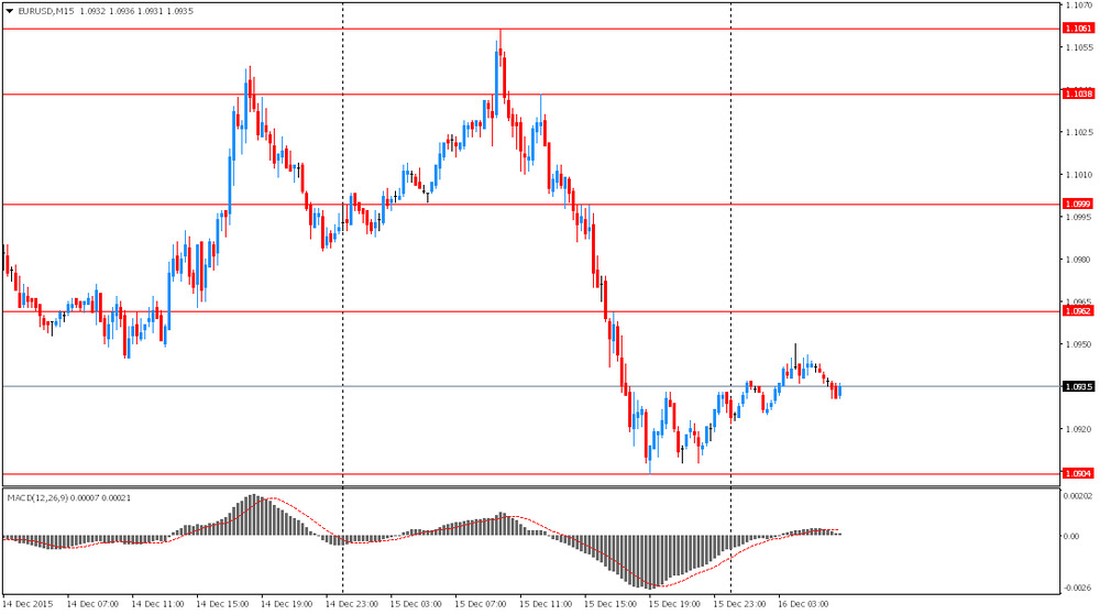 В 08:00 GMT Франция, в 08:30 GMT Германия, в 09:00 GMT еврозона опубликуют индекс деловой активности в производственном секторе и индекс деловой активности в секторе услуг за декабрь. В 09:30 GMT в Великобритании выйдет изменение среднего заработка (за исключением бонусов), изменение среднего заработка, количество заявлений на получение пособий по безработице, уровень безработицы по ILO за октябрь. В 10:00 GMT еврозона представит сальдо торгового баланса, без сезонных поправок за октябрь, индекс потребительских цен за ноябрь. В США в 13:30 GMT выйдут закладки новых домов, разрешения на строительство за ноябрь, в 14:15 GMT - использование мощностей, промышленное производство за ноябрь, в 14:45 GMT - индекс деловой активности в производственном секторе за декабрь. В 19:00 GMT станет известно решение ФРС по ставкам, будут выпущены экономические прогнозы Комитета по открытым рынкам ФРС и сделано сопроводительное заявление Комитета по открытым рынкам ФРС. В 19:30 GMT пройдет пресс-конференция Федеральной резервной системы. В 21:45 GMT Новая Зеландия выпустит ВВП за 3-й кв. В 23:50 GMT Япония опубликует общее сальдо торгового баланса за ноябрь.