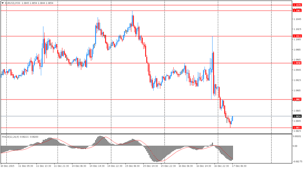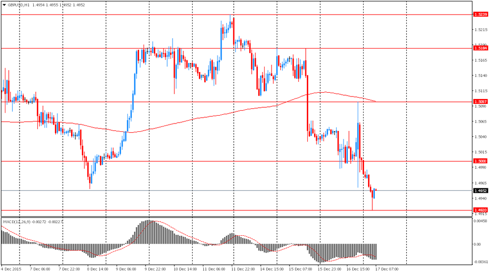 Новозеландский доллар упал против доллара несмотря на выход позитивных данных по росту ВВП страны. Решение ФРС о повышении ставок затмило это событие. ВВП страны в 3-м квартале вырос на 0,9% против ожидаемого роста 0,8%. Представленные данные свидетельствуют об ускорении темпов роста экономики Новой Зеландии после замедления в первой половине года, но экономисты и представители правительства сомневаются в том, что подобная тенденция сохранится в 2016 году.