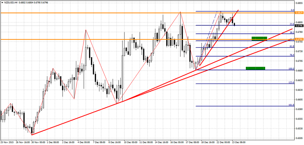 Пара NZD/USD не смогла преодолеть сопротивления на 0,6830, что говорит о недостаточности силы «быков». В результате складывается технически благоприятная картина для разворота восходящего движения. Оно носит коррекционный характер к основному нисходящему тренду на дневном таймфрейме. Более того, коррекция дошла как раз до трендовой линии этого глобального даунтренда, и цена оттолкнулась от неё вниз.