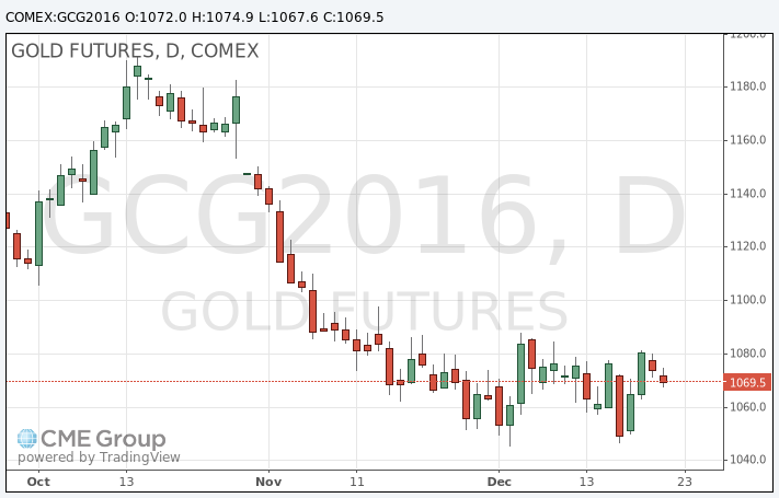 Стоимость февральского фьючерса на золото на COMEX упала до 1067.60 долларов за унцию.
