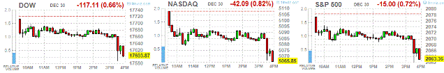 Почти все компоненты индекса DOW завершили торги в отрицательной зоне (29 из 30). Аутсайдером оказались акции NIKE, Inc. (NKE, -1,39%). Выросли только акции Wal-Mart Stores Inc. (WMT, +0.28%).