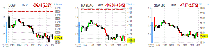Основные фондовые индексы США потеряли более 2% в четверг на фоне усиления опасений относительно перспектив роста экономики Китая и негативной динамики цен на нефть.