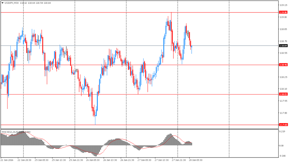 Иена выросла после публикации данных по розничным продажам Японии. Розничные продажи в Японии в декабре снизились на -1.1%, что совпало со значением годом ранее. Аналитики ожидали снижение показателя на -0.1%. Розничные продажи в декабре упали на -0.2%, после падения на -2.5% в ноябре. Инвесторы также постепенно переключают внимание на заседание Банка Японии. Некоторые участники рынка ожидают, что Банк Японии примет решение о дальнейшем увеличении стимулирования, учитывая замедление темпов инфляции в Японии и колебания на мировых фондовых рынках, продолжающиеся с начала года. Однако, если Банк Японии не станет менять политику, то пара, вероятно, испытает понижательное давление, так как японские корпоративные инвесторы будут продавать пару при росте в преддверии конца месяца.