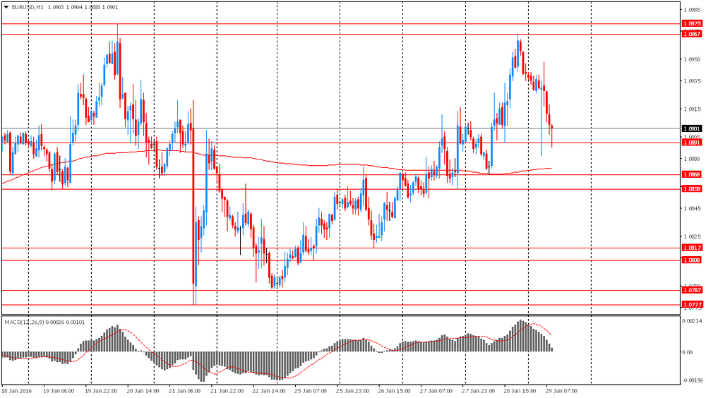 Евро снизился в ожидании сегодняшней публикации инфляционных данных. Согласно среднему прогнозу экономистов, индекс потребительских цен в годовом выражение в еврозоне в январе вырастит на 0,4% против 0,2% в декабре. Если данные подтвердят прогноз, это можно расценивать, как намек на то, что в 2016 году инфляция может начать расти. Вчера управляющий Бундесбанка Йенс Вайдманн посоветовал ЕЦБ не обращать существенного внимания на некоторое замедление инфляции.