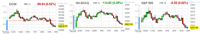 Основные фондовые индексы США закрылись смешано, что было связано с заявлениями председателя Федеральной резервной системы Джаннет Йеллен и ростом акций технологического сектора. На ход торгов также влияли колебания нефтяных котировок. Сегодня ОПЕК сообщила, что мировой спрос на нефть в 2016 году вырастет на 1,25 млн баррелей в сутки и достигнет в среднем 94,21 млн баррелей в сутки. По сравнению с январской оценкой ОПЕК прогноз по спросу увеличен на 40 тысяч баррелей в сутки. В 2015 году, по расчетам картеля, суточный спрос на нефть составил в среднем 92,96 млн баррелей в сутки. Глобальный спрос на нефть, добытую в государствах ОПЕК, по оценкам, увеличится на 1,8 млн баррелей до 31,6 млн баррелей в сутки. При этом суточная добыча в странах ОПЕК в январе 2016 года достигла 32,33 млн баррелей, увеличившись по сравнению с декабрем 2015 года на 131 тысячу баррелей. Прогноз по добыче нефти в странах, не входящих в ОПЕК, был ухудшен на 40 тысяч баррелей в сутки. В ОПЕК ожидают падения добычи на 700 тысяч баррелей в сутки до 56,28 млн баррелей.