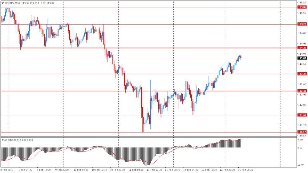 Иена упала против доллара на фоне слабых данных по ВВП Японии. Как сообщило сегодня правительство Японии в последнем квартале 2015 года ВВП страны упал, в годовом исчислении на -1.4%. Валовой внутренний продукт в Японии в четвертом квартале снизился на -0.4% после роста на 0.3% в третьем квартале. Слабые данные могут заставить ЦБ вмешаться в ситуацию.