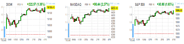 Торги во вторник фондовые индексы США завершили ростом после выходного дня накануне по случаю государственного праздника, инвесторы реагировали на стабилизацию нефтяных цен и самое мощное повышение китайского рынка акций за три месяца.