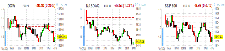 Основные фондовые индексы Wall Street закрылись ниже нуля в четверг на фоне снижения акций Wal-Mart (WMT) после публикации квартального отчета и возврата нефтяных фьючерсов из плюсовой в минусовую зону.