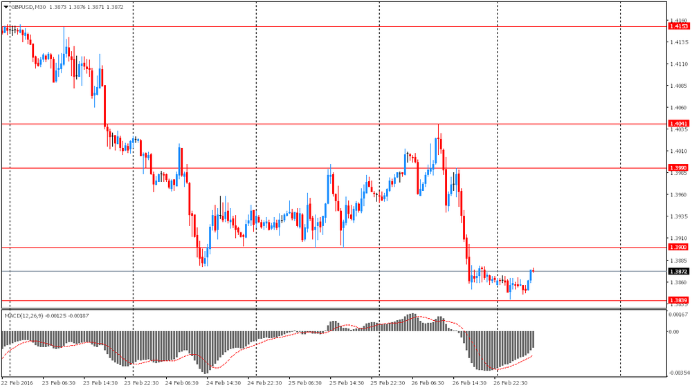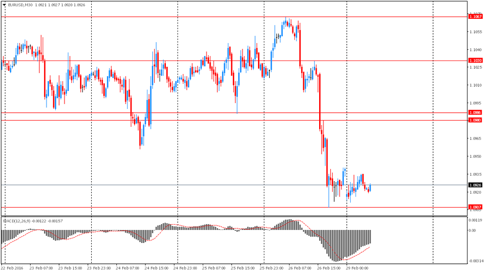 Евро торговался в диапазоне в преддверии сегодняшней публикации инфляционных данных. Согласно среднему прогнозу аналитиков, индекс потребительских цен в феврале не изменился по сравнению с тем же периодом прошлого года после роста на 0,3% в январе. Темпы годового роста базового индекса потребительских цен, не учитывающего цены на продукты питания и энергоносители, в отчетном периоде, вероятно, замедлились до 0,9% с 1% в январе. Если прогнозы подтвердятся, то это увеличит давление на Европейский центральный банк, побуждая его заявить о новых стимулирующих мерах на своем заседании в марте.