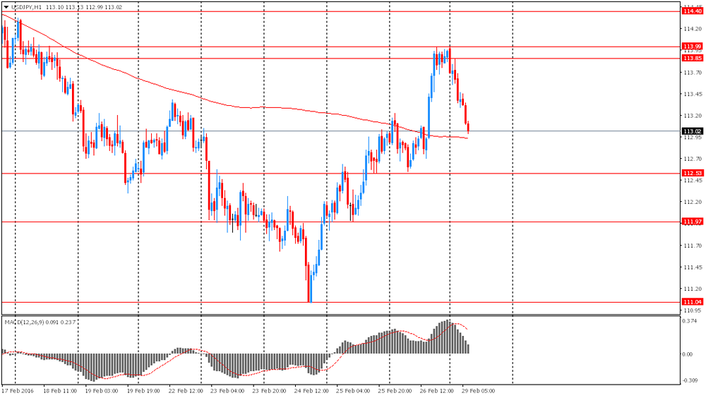 Иена укрепилась на фоне падения фондовых рынков Азии, что привело к росту спроса на валюту-убежище. На текущий момент индекс SHANGHAI COMP теряет более 4%. Дополнительную поддержку японской валюте оказала публикация сильных данных. Как стало известно, промышленное производство в январе в Японии выросло на 3.7%, после снижения в декабре на -1.7%. Аналитики ожидали рост показателя на 3.3%. Однако, в годовом исчислении, промпроизводство Японии снизилось с предыдущего значения -1.9% до -3.8%. Рост промышленного производства в январе 2016 года стал самым сильным с января 2015 года и это первое положительное изменение в течение 3 месяцев.