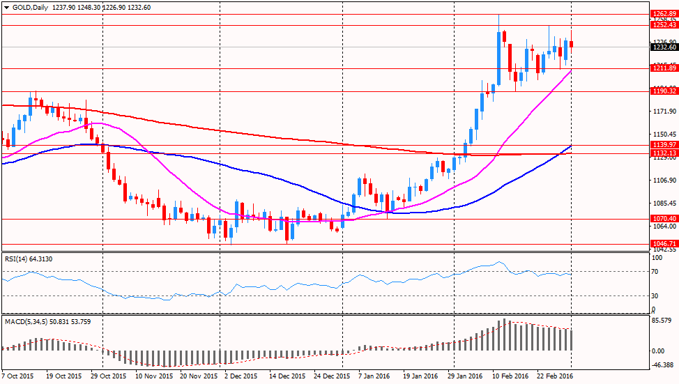 Стоимость мартовского фьючерса на золото на COMEX сегодня снизилась до $1232,60 (-0,33%) за унцию.