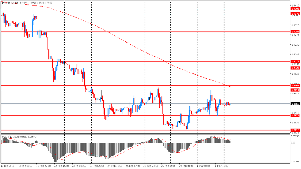 В 09:30 GMT Британия представит индекс PMI для строительного сектора за февраль. В 10:00 GMT еврозона опубликует индекс цен производителей за январь. В 13:15 GMT США отчитается по изменению числа занятых от ADP за февраль, а в 15:30 GMT - об изменении запасов нефти. В 19:00 GMT в США состоится публикация экономического обзора ФРС по регионам «Бежевая Книга». В 22:30 GMT Австралия выпустит индекс активности в сфере услуг от AIG за февраль.