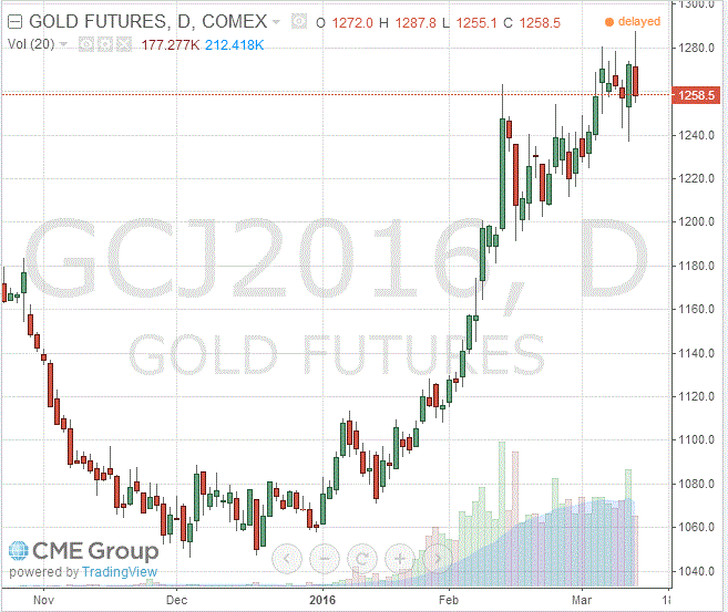 Стоимость апрельского фьючерса на золото на COMEX сегодня упала до $1258,50 за унцию.