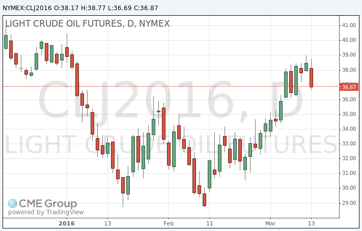 Brent достигла сессионного минимума $38,97 после того, как министр нефти Ирана Бижан Зангане заявил, что Тегеран присоединится к дискуссии по поводу возможного замораживания производства с другими экспортерами только после того, как его собственный объем добычи достигнет предсанкционного уровня почти в 4 млн баррелей в сутки.
