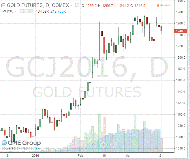 Стоимость апрельского фьючерса на золото на COMEX сегодня упала до $1246,90 за унцию.