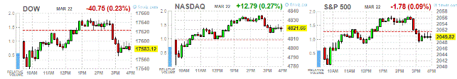 Основные фондовые индексы Уолл-стрит закрылись разнонаправленно, так как рост акции Apple (AAPL) и бумаг сектора здравоохранения был нивелирован серией терактов в бельгийском Брюсселе. Утром 22 марта в Брюсселе прогремели взрывы в аэропорту и на станции метро, которые унесли жизни более чем 34 человек. Власти Бельгии признали взрывы терактами и повысили уровень террористической угрозы в стране до наивысшего - четвертого. Воздушное сообщение с Бельгией и движение общественного транспорта в Брюсселе приостановлены.