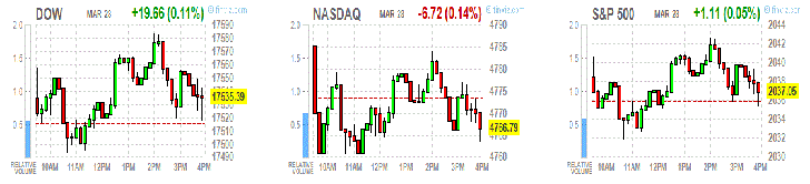 Основные фондовые индексы Уолл-стрит закрылись вблизи нулевой отметки после длинных пасхальных выходных, прирост акций компаний сектора потребительских товаров был компенсирован за счет потерь в секторе конгломератов. Инвесторы также оценивали февральские данные по потребительским расходам.