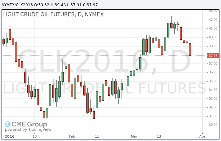 Стоимость майских фьючерсов на американскую легкую нефть марки WTI (Light Sweet Crude Oil) снизилась до 37,91 доллара за баррель.