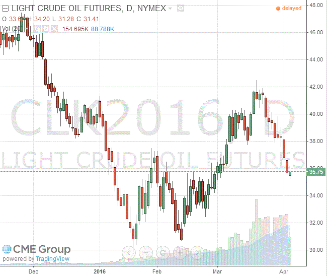Стоимость майских фьючерсов на американскую легкую нефть марки WTI (Light Sweet Crude Oil) выросла до 35,75 доллара за баррель.