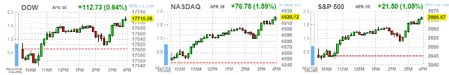 Основные фондовые индексы Уолл-стрит выросли в среду, чему способствовал рост акций энергетического сектора и сектора здравоохранения. Инвесторы также обратили внимание на протоколы последнего заседания ФРС, которые показали, что в марте руководители ЦБ склонялись к тому, чтобы не повышать ставки на заседании в апреле. Они полагали, что препятствия для экономического роста будут уменьшаться довольно медленными темпами и не хотели спешки в процессе повышения ставок.