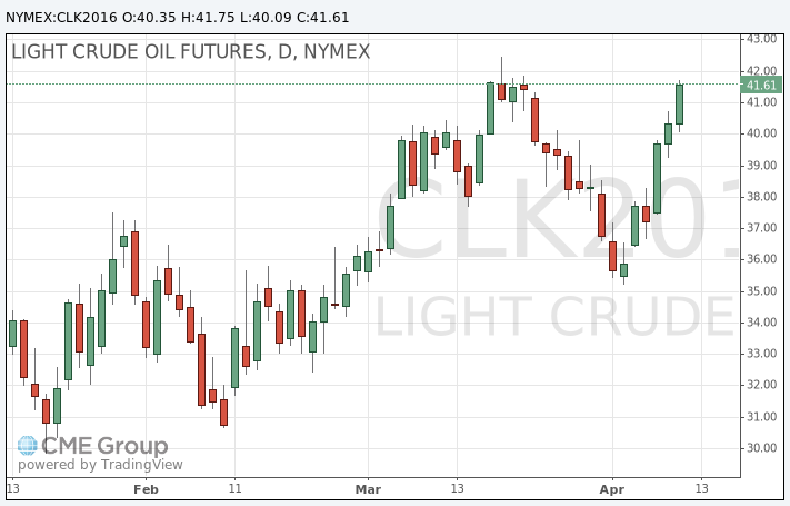 Встреча производителей нефти, в которой примут участие ряд стран ОПЕК и Россия, запланирована на воскресенье, 17 апреля, и пройдёт в столице Катара Дохе. В преддверии мероприятия индекс доллара к корзине основных валют упал до минимального значения почти за восемь месяцев, поддержав сырьевой сектор.