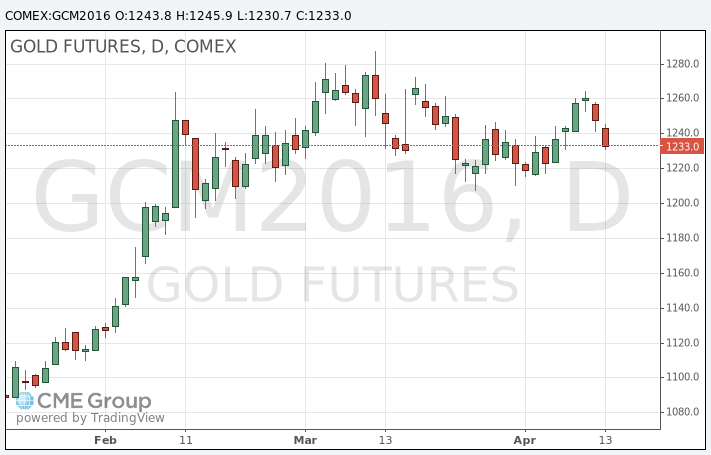 Стоимость июньского фьючерса на золото на COMEX сегодня упала до $1230,7 за унцию.