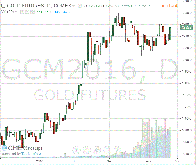 Стоимость июньского фьючерса на золото на COMEX сегодня выросла на $20.6, до $1255,7 за унцию.