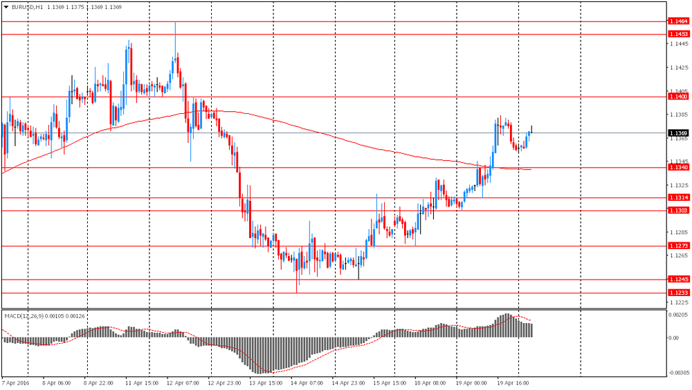 Также сегодня глава Банка Японии Курода отметил, что рост иены может подорвать усилия Банка Японии по повышению инфляции. Также он подчеркнул, что Банк Японии без замешательства примет меры вновь, чтобы повысить инфляцию. Ранее вчера представитель правительства Японии заявил, что правительство внимательно следит за валютными рынками и без колебаний примем дополнительные меры, если участники рынка будут намеренно поднимать иену слишком высоко. Думаю, что Большая двадцатка поддерживает нашу решимость принять дополнительные меры для достижения уровня инфляции 2% в случае необходимости. Инвесторы также ждут заседание Банка Японии, запланированное на 27-28 апреля. Помимо решения по денежно-кредитной политике банк опубликует свои прогнозы инфляции и роста экономики. Последний опрос 16 аналитиков, проведенный Reuters показал, что Банк Японии может вновь смягчить политику к июлю. 8 из них ждут смягчения политики на заседании 27-28 апреля, 3 прогнозируют, что смягчение произойдет в июне, 5-ро - в июле.