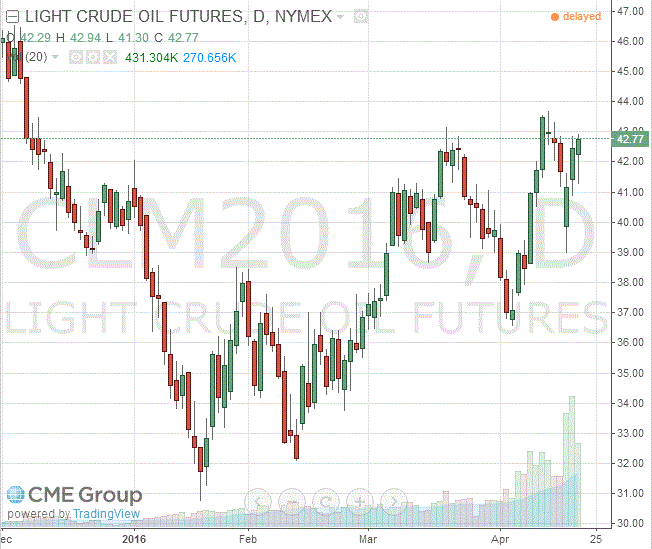 Cтоимость июньских фьючерсов на американскую легкую нефть марки WTI (Light Sweet Crude Oil) выросла до 42,77 доллара за баррель.