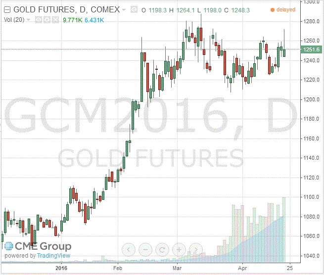 Стоимость июньского фьючерса на золото на COMEX сегодня опустилась до $1251,6 за унцию.
