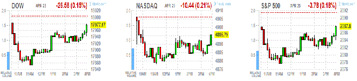 Основные фондовые индексы Уолл-стрит снизились в понедельник. Падение цен на нефть, скромные квартальные отчетности и предстоящее заседание Федеральной резервной системы оказало давление на настроения инвесторов.