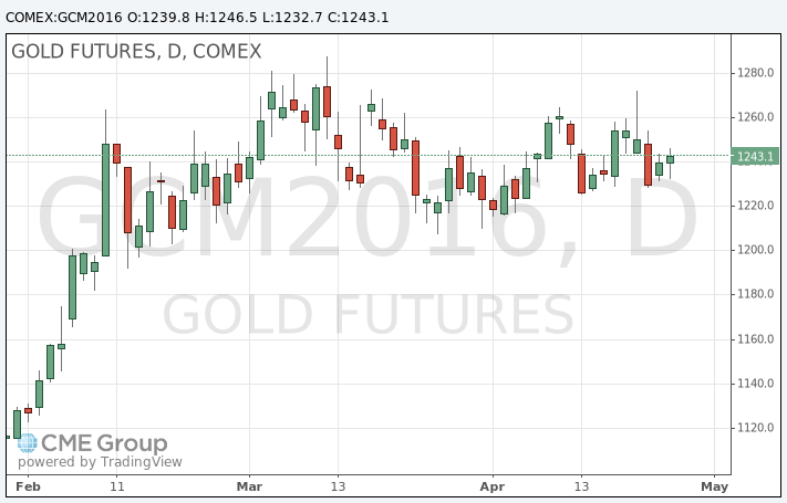 Стоимость июньского фьючерса на золото на COMEX сегодня выросла до $1246,5 за унцию.