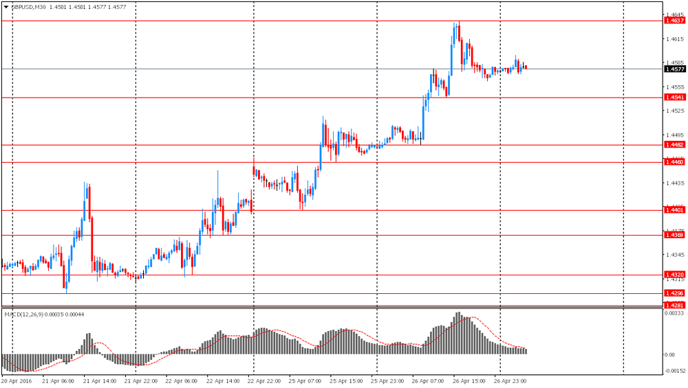 Австралийский доллар резко упал после публикации данных по инфляции. В первом квартале 2016 года индекс потребительских цен Австралии составил -0,2%, что ниже предыдущего значения 0,4% и прогнозов экономистов 0,3%. В годовом исчислении показатель также снизился и составил 1,3%. Предыдущее значение было 1,7%. Аналитики ожидали рост показателя до 1,8%.