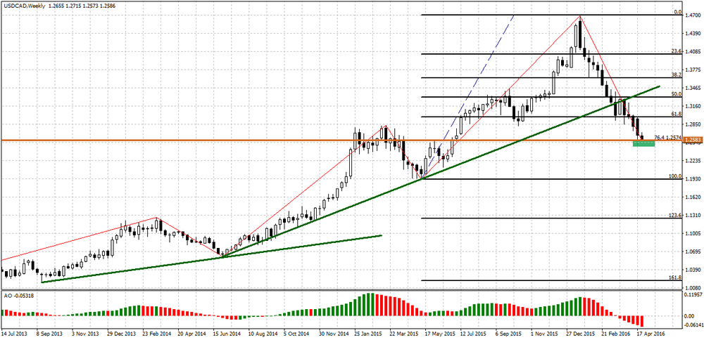 Технически пара пришла к сильной поддержке, которая находится на 1,2570 (76,4% по Фибоначчи от последнего восходящего импульса на W1 и горизонтальный уровень передома цены в мае 2015 г.).