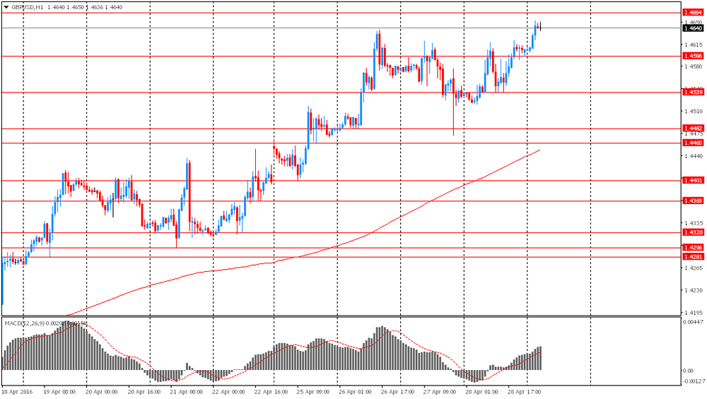 Британский фунт вырос несмотря на выход слабой макростатистики. Как стало известно индекс потребительского доверия Великобритании от GfK Group в апреле снизился на три пункта до -3, что стало самым низким значением с конца 2014 года. Снижению индекса способствовало ухудшение оценки британцами общей экономической ситуации. Британцы также стали менее оптимистично оценивать свои личные экономические перспективы. Напомним, референдум о членстве Великобритании в Евросоюзе запланирован на 23 июня. Британцы разделились во мнениях относительно того, стоит ли стране оставаться ли в ЕС, или же лучше пуститься в одиночное плавание в качестве пятой крупнейшей экономики мира.