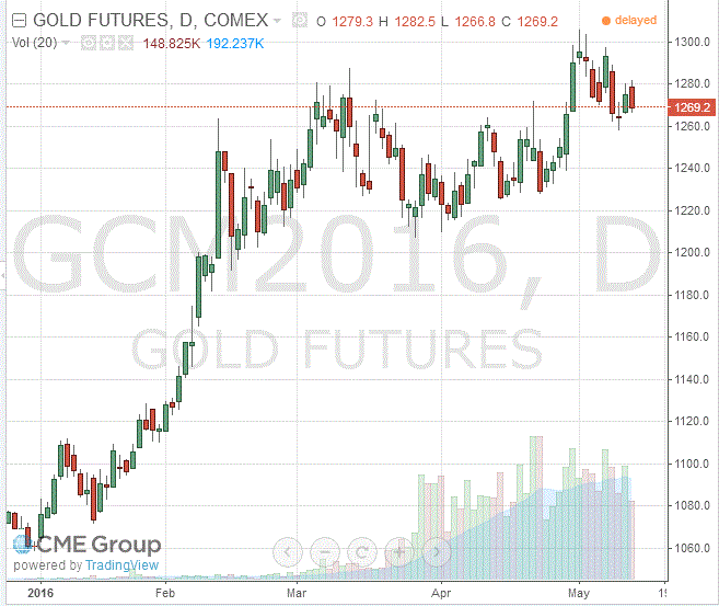 Стоимость июньского фьючерса на золото на COMEX снизилась до $1269,2 за унцию.