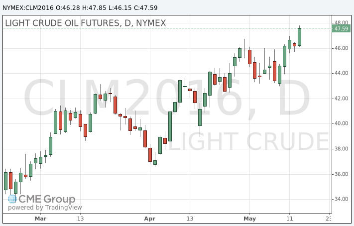 Стоимость июньских фьючерсов на американскую легкую нефть марки WTI (Light Sweet Crude Oil) выросла до 47,85 доллара за баррель.