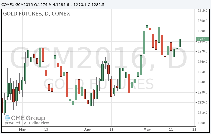 Стоимость июньского фьючерса на золото на COMEX выросла до $1283,6 за унцию.