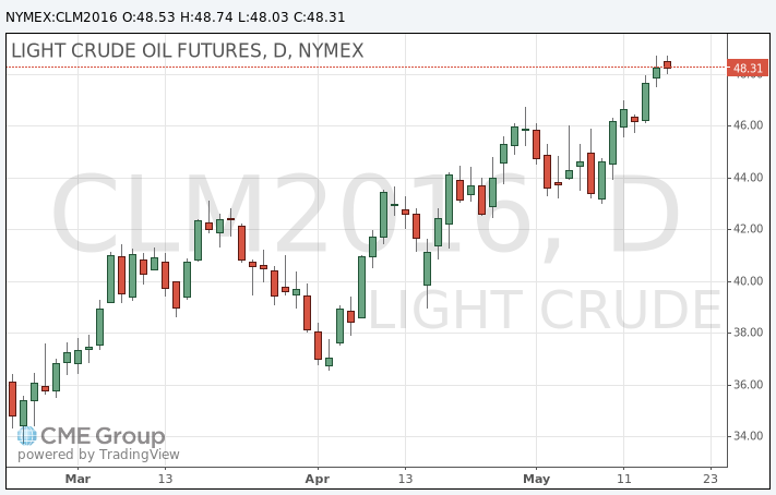 Стоимость июньских фьючерсов на американскую легкую нефть марки WTI (Light Sweet Crude Oil) упала до 48,03 доллара за баррель.