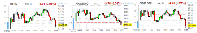 Основные фондовые индексы США завершили торги c незначительным понижением. Инвесторы продолжали уделять повышенное внимание американским макроэкономическим данным и перспективам повышения процентных ставок.