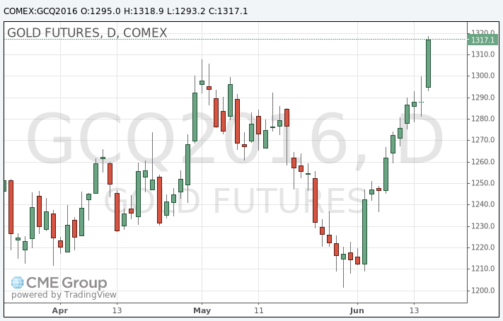 В июне цены на драгоценный металл выросли более чем на 8%, так как рыночные игроки пересмотрели ожидания следующего повышения процентной ставки в США, а также на фоне повышенной обеспокоенности возможным выходом Великобритании из состава Европейского Союза по итогам референдума 23 июня.