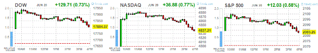 Основные фондовые индексы Уолл-стрит умеренно выросли в понедельник после того, как опросы общественного мнения показали повышенную возможность Великобритании остаться в Европейском Союзе.