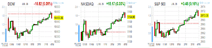Инвесторы ожидали выхода квартальных отчетов Amazon.com Inc. (AMZN) и Alphabet Inc. (GOOG), публикация которых состоится после закрытия торговой сессии.