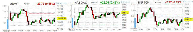 Большинство компонентов индекса DOW завершили торги смешано (16 в минусе, 14 в плюсе). Больше остальных выросли акции Apple Inc. (AAPL, +1.71%). Аутсайдером оказались акции Exxon Mobil Corp. (XOM, -3.65%).
